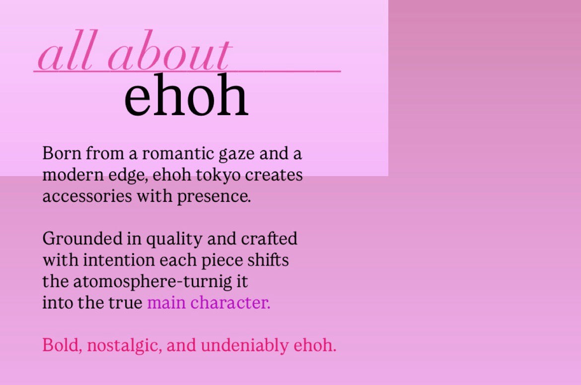 ehoh tokyo is a Japanese hair-accessory brand where the sweet gram mood of the '90s-'00s meets modern edge.